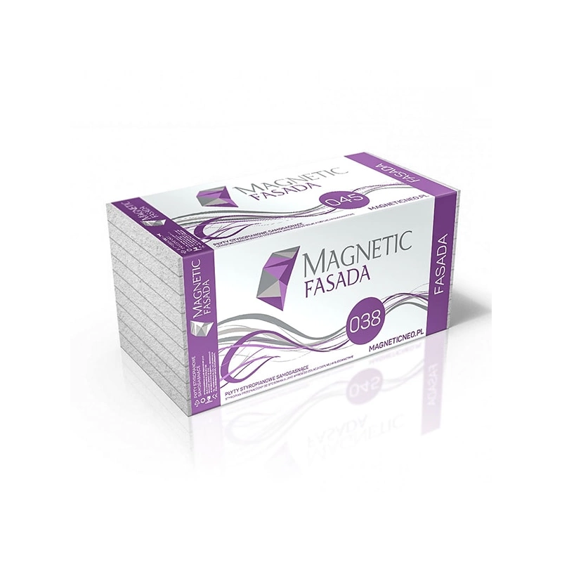 MAGNETIC FASADA EPS 70-038 - Współczynnik przewodzenia ciepła λD ≤ 0,038 W/mK Klasa reakcji na ogień E Wymiary płyt 1000 x 500 mm Krawędzie proste.