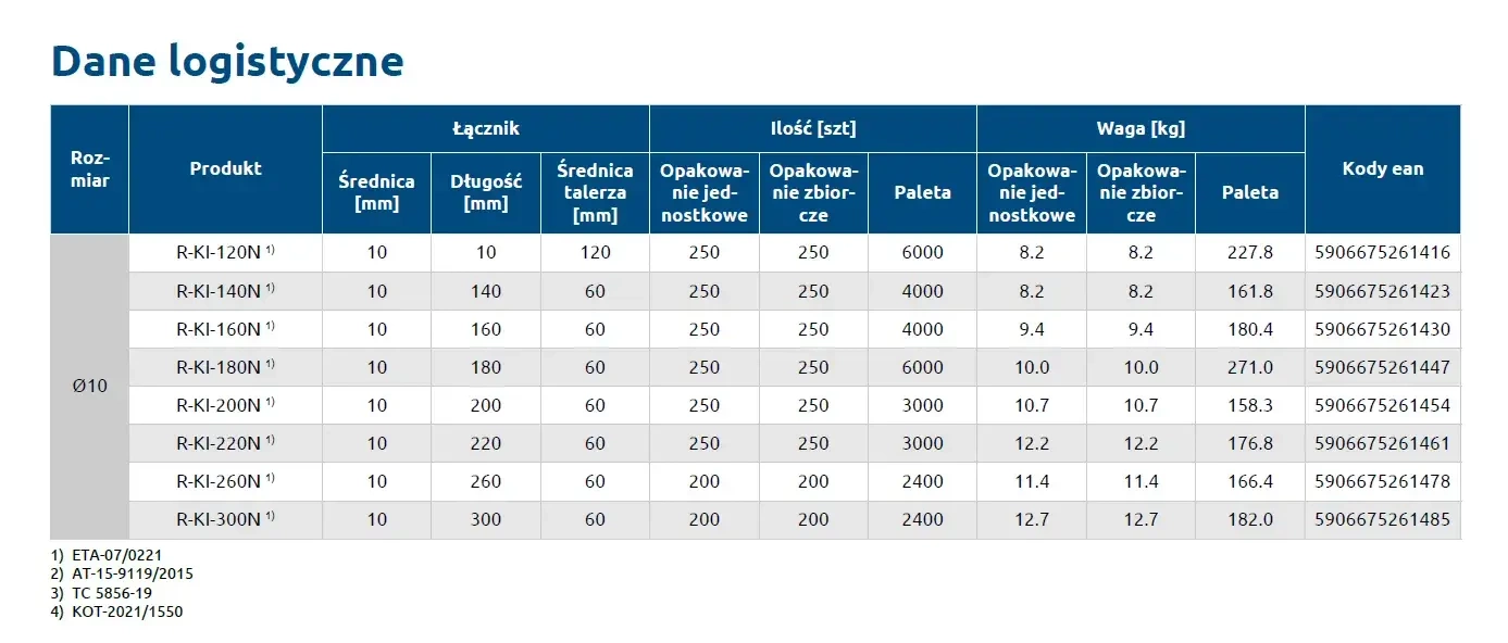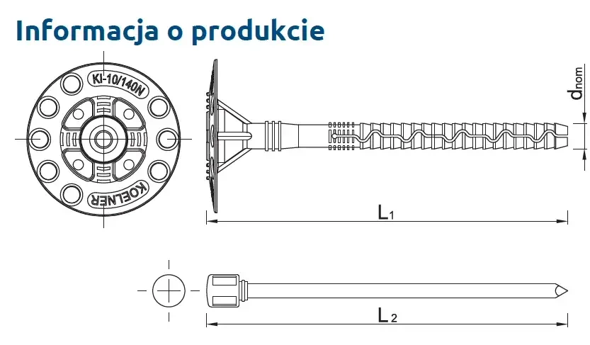 KI - 260N - Kołek do mocowania izolacji 10/260 mm wbijany z długą strefą rozporu to produkt, który służy do uzyskania wysokich parametrów zarówno w cegle pełnej, jak i perforowanej, a także w betonie lekkim i gazobetonie. Przeznaczony jest do aplikowania w systemach ociepleń elewacji (ETICS), płytach styropianowych, płytach poliuretanowych, z wełny mineralnej, drzewnej, czy lekkich płytach termoizolacyjnych.