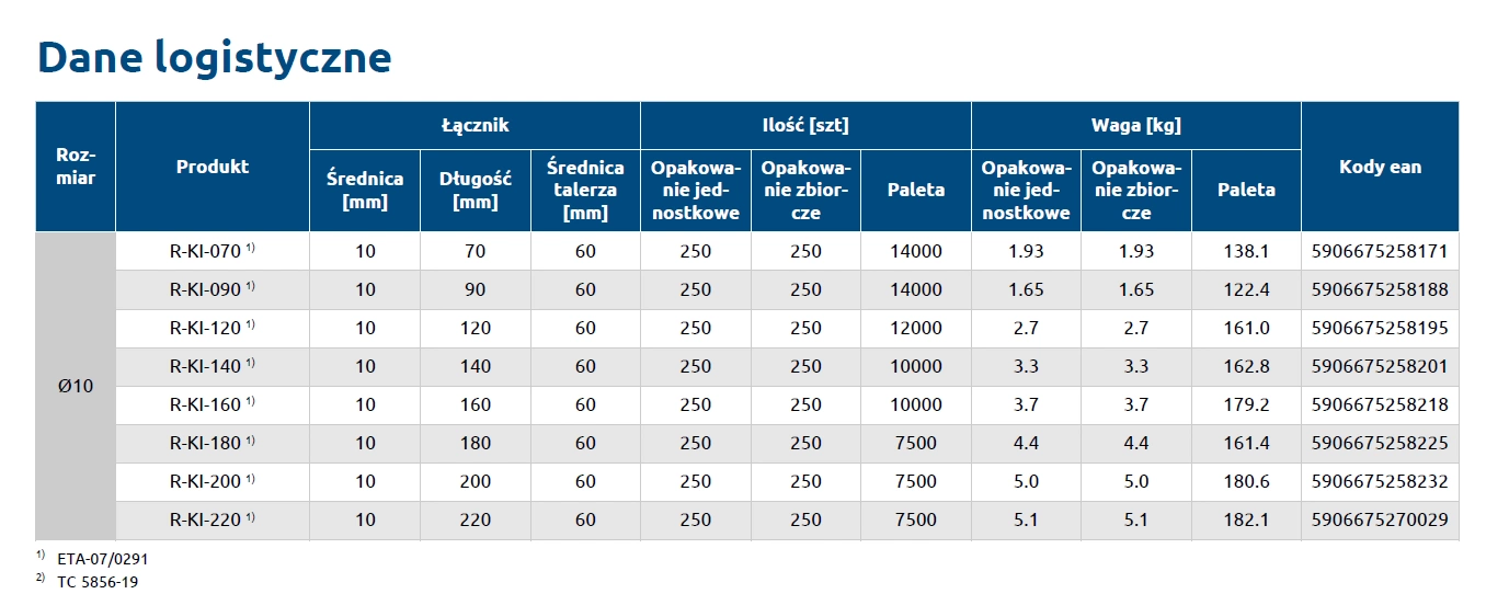 4. Głębokość zakotwienia w betonie i cegle pełnej 25mm, w materiałach otworowych 40mm, w betonie lekkim i gazobetonie