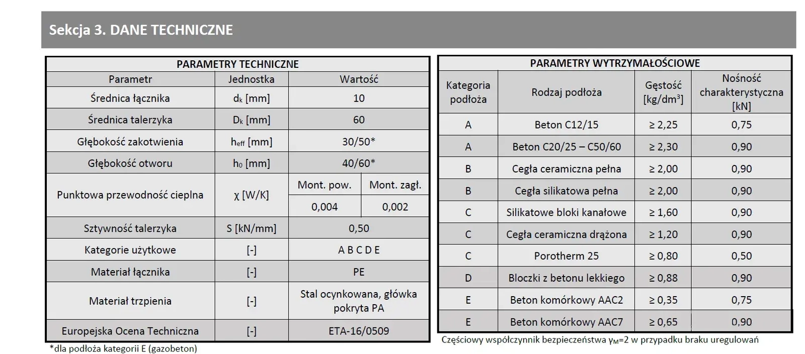 Zanim  rozpoczniemy montaż zorientujmy się, jakie mamy podłoże i dobierzmy odpowiednie łączniki. Zapewni to nam trwałe i bezpieczne mocowanie. Szczególnie ważna jest tutaj długość łącznika. Strefa rozporowa musi się znajdować w materiale konstrukcyjnym ściany.   Mamy kołek do styropianu o rozmiarze 10x160, gdzie 10 mm oznacza jego średnicę, a 160 mm – długość. Minimalna długość łącznika to Ld=tfix + ttol + heff, gdzie tfix to grubość mocowanej termoizolacji, ttol to grubość warstw wyrównujących (zaprawa klejąca i tynk), a heff to głębokość zakotwienia łącznika w podłożu. Przed rozpoczęciem montażu powinniśmy sprawdzić, czy podłoże, do którego będziemy instalować kołek rozporowy LMX 10x160 jest przygotowane zgodnie z wytycznymi producenta systemu dociepleniowego ETICS. Płyty termoizolacyjne muszą zostać zamocowane za pomocą zaprawy klejowej. Pamiętajmy również o tym, że średnica wierconych otworów powinna być zgodna ze średnicą zastosowanych łączników. W przypadku podłoży z materiałów pełnych, otwory powinny być głębsze o co najmniej 10 mm od głębokości zakotwienia łącznika. Otwory te musimy oczyścić ze zwiercin ruchem posuwisto-zwrotnym przy użyciu wiertarki o zwolnionych obrotach powtarzając tę czynność cztery razy. Wiercenie otworów w podłożach z pustkami i gazobetonie trzeba wykonać bez użycia udaru. Unikniemy dzięki temu rozbicia ścianek wewnętrznych i zminimalizowania wytrzymałości łączników na wyrywanie. Ilość łączników na 1 m2 powierzchni ocieplenia powinna być określona w projekcie ocieplenia zgodnie z Ustawą Prawo Budowlane (Dz. U. 1994 z późniejszymi zmianami) i wynosi orientacyjnie: styropian – min. 2 szt./płytę – 4 szt./m2, wełna mineralna MW – min. 6 szt./m2. Musimy jednak pamiętać o tym, że podana ilość łączników nie zastąpi projektu ocieplenia. Aby zamocować łączniki, należy zlokalizować miejsce montażu tak, aby było ono zgodne z położeniem zaprawy klejowej na płycie termoizolacyjnej. Łącznik powinien zostać zamocowany w taki sposób, aby jego korpus był zintegrowany z materiałem termoizolacyjnym. Następnie należy przybić trzpień łącznika. Jest to gwarancją trwałego przymocowania. Możemy też zamocować łączniki w wyciętych otworach przy użyciu frezu WK-FT. Jest to wówczas montaż zagłębiony. Po montażu łączników, należy zakryć miejsca mocowania za pomocą krążków ze styropianu KS/KSG (montaż zagłębiony).